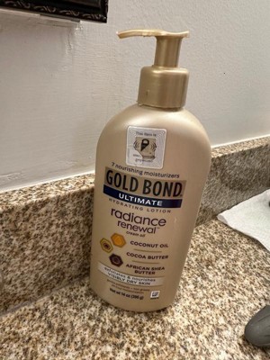 Get healthy-looking, glowing skin with Gold Bond Cocoa Butter Glow Daily Hydrating Lotion for dry skin. The triple-action formula gently exfoliates, hydrates and locks in moisture for 24 hours. You won't even know it's there while it nurtures your skin with seven nourishing moisturizers and Vitamins B, C and E. Formulated with coconut oil, cocoa butter, and shea butter, this moisturizing cream nourishes dry, ashy skin for a healthy-looking glow. Join the 88% who saw smooth and glowing skin in one day* with Gold Bond Cocoa Butter Glow Daily Hydrating Lotion. DIRECTIONS: Apply liberally to skin as often as needed. Reapply to increase level of moisturization and keep visibly dry skin from coming back.