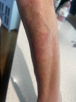 I purchased to help the skin on my arms. The first application my skin began to itch and turned bright red! I have never had a reaction to skin lotions and don’t have sensitive skin! I don’t know what is in this that caused this reaction, but it was a waste of money! There should be a warning on the label!!!!