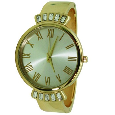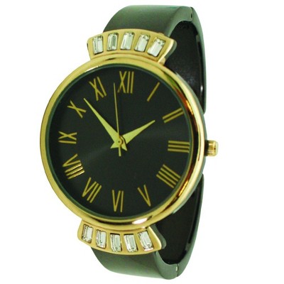 Gold Olivia Pratt Elegant Emerald Rhinestone Solid Metal Bangle Watch