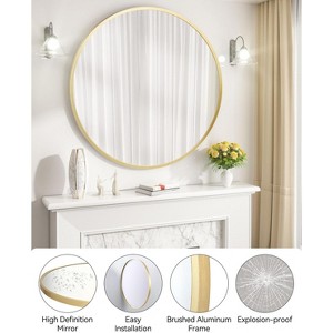 Gold Round Mirror, Circle Mirror with Metal Frame, Round Wall Mounted Mirrors for Living Room, Bathroom, Wall, Entryway