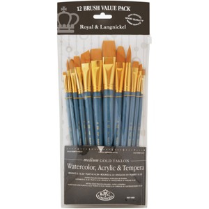 Royal & Langnickel(R) Gold Taklon Flat Value Pack Brush Set-12/Pkg