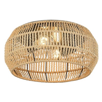 Golden Lighting Camden 2-Light Flush Mount in Matte Black with Natural Raphia Rope