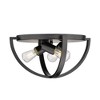 This transitional and industrial-chic design is ideal for lofts, farmhouses, and contemporary interiors. Curvaceous arms sit inside simple round frames. The extensive collection includes wall and ceiling fixtures. Fixtures may be purchased with or without metal mesh shades. The optional shades shield the exposed bulbs of these elemental fixtures. Available in multiple finishes, this 24" semi-flush is approved for damp locations and elongated to fit perfectly in hallways and other narrow spaces.
