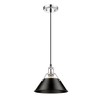 Orwell is an extensive assortment of industrial style fixtures. The beauty and character of the collection are in the refined details. This transitional series works well in a variety of settings. Partial shades shield the eyes from possible hot spots, while the open tops tease onlookers with a view of the sockets and bulbs. The design allows light and heat to escape from above and below the metal shades, providing both task and ambient lighting. Edison bulbs are recommended to complete the vintage, industrial look of the fixtures. A choice-selection of finish and shade color combinations heighten the appeal of the series. Single pendants are suspended from woven fabric cords while multi-light fixtures are rod-hung.