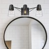 Industrial-inspired, Ryker is the perfect addition to the modern bathroom. A smooth Matte Black finish lends sophistication to the design. The unique double arms are reminiscent of suspension bridge cables. Hang above a mirror or vanity. Chunky metal cups house clear conical glass shades for wide-spread illumination where you need it most. Push the design further with Edison-style bulbs.