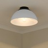 The Zoey Collection is proof that simple can be beautiful. This elegantly utilitarian series has the chic versatility to enhance the style of a variety of spaces. The smooth lines of this minimalist design pair well with transitional to modern d cors. The cleanness of the contemporary look gives the fixtures a slightly industrial feel. Zoey is offered in a number of sizes with a combination of matte sheen shade and finish options available. The color of the shade s interior consistently matches the shade s exterior finish. The silhouette of the metal shade is a modern update to the classic dome shape. This Flush Mount is perfect for bathrooms, hallways, and kitchens.