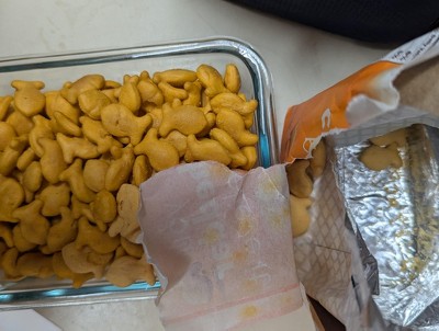 The small packages of goldfish tasted gross and were all smashed inside the bag.