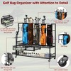 - Easy Assembly and Portability: Golf organizer with detailed assembly instructions and lightweight design, this golf bag storage organizer can be set up in minutes With the help of the instructions. It's easy to move, allowing you to reposition it as needed to fit your space perfectly.