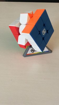 [This review was collected as part of a promotion.] This a very nice cube. It is easy and smooth to operate, no noise when you move it around. The colors are very nice and the squares are not stickers. It looks strong made out of hard plastic. Very easy to operate. I like it. It comes with a small stand, and I wish the stand was a little bigger.