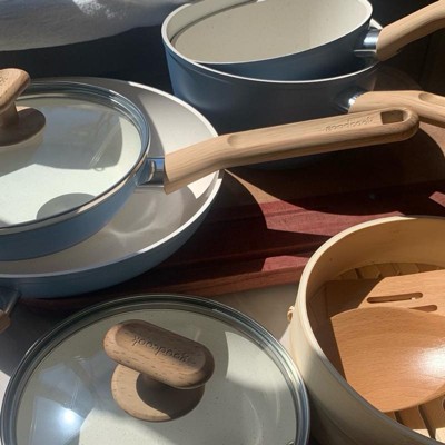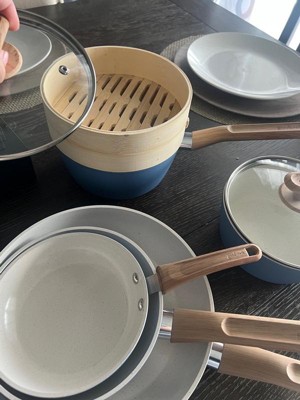 [This review was collected as part of a promotion.] Love this set, I was really impressed with the quality, they have a nice solid construction, yet are light weight. Key pluses * The handles fit really well in my hand. * They clean up so easily, no sticking without having to add anything to the pans first * A good range of sizes, I love the smallest frying pan for cooking an egg or making a sandwich * The 2 utensils are amazing, they are so smooth instead of a rough wood. They are simple to keep clean and work so well * The bamboo steamer is a nice addition, it’s a good size for one or two servings, I use it to quickly steam some fresh vegetables. * They evenly heat up on my gas stovetop, no hot spots, and have a nice solid bottom Overall this is a perfect starter set for a single person or couple, or a nice addition to what you already have. This works great for my husband and myself, I would have to add a few larger sized pans and pots if I was using these for the whole family, but you can’t beat this quality with this many pieces for the price. I really do love them all and will be using each piece regularly.