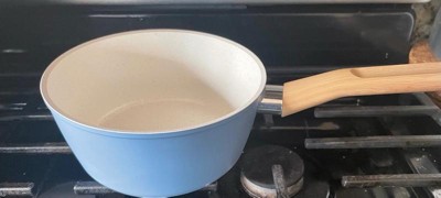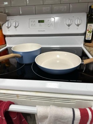 [This review was collected as part of a promotion.] I love love this cookware set! Especially the middle pan - I’ve used it every day since I’ve gotten it!! I am not by any means a good cook so I just need the basics and this cookware set does exactly that. 3 pans of varying sizes and 2 pots is perfect for someone who is looking for a quick and easy meal and ESPECIALLY wants easy cleaning. First off - the blue color is so unique in my kitchen. And let’s talk about the mini pan - it is the most adorable thing ever, it even has a small handle but more than anything it is perfect for when I want to fry an egg.The two bigger pans are very useful - I especially have been using the middle one the most just for a quick stir fry or scrambled eggs for one person. The pots are the perfect sizes for pasta and quick sauces. Overall, I am loving this cookware set - the shapes, the sizes, and the easy cleaning is the perfect starter set.
