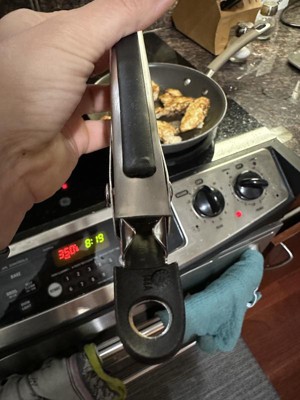 [This review was collected as part of a promotion.] I'm in love with these tongs and I don't use thst word lightly! Before I get started I should mention I bured my house down in 2016 while cooking and ever since I've been TERRIFIED of cooking! I burned it down while deep frying. So I only recently started deep-frying again and these tongs are amazing for my fear! Thry are super long which means I don't hsve to be super close and I don't hsve to worry about being popped by anything which usually causes me to jump which splashes oil. They also do not have those stupid black rubber *grips* on the end which food just slides off when grabbing! These are all metal and have a spoon like shape with fork type prongs all on the edges, perfect for crabbing and holding food so it doesn't slip! Which is a huge help!. The lock on them works great for storing these though not a help when using them but they are a help when put away in a drawer. Overall my new favorite, most used item in the kitchen!