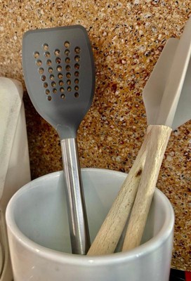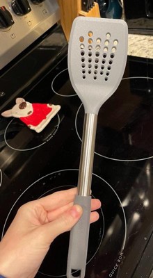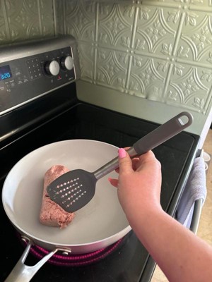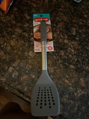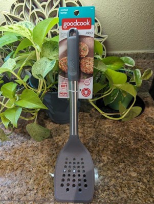 [This review was collected as part of a promotion.] This GoodCook Pro slotted turner is made of a strong nylon head, which is great for lifting and flipping foods, such as fish, pancakes, or quesadilla. It is heat resistant to 400 degrees and dishwasher safe!