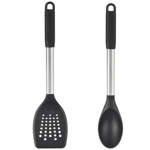 Our Good Cook Ready Turner and Spoon set is the perfect duo tool set for in the kitchen. The turner allows you to flip, lift and transfer foods, while the spoon allows you to stir and baste foods. The tools are made of durable nylon that is heat safe up to 400F (240C). Both items are easy to clean and are top rack dishwasher safe.
