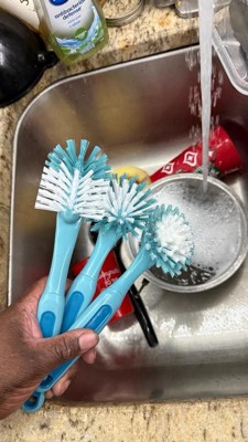 - Set Of Three Dish Brushes: Combines the longer-length design of a brush with durable nylon bristles to keep your glasses, bottles, cups, plates, bowls, pots, pans, and more clean and spotless