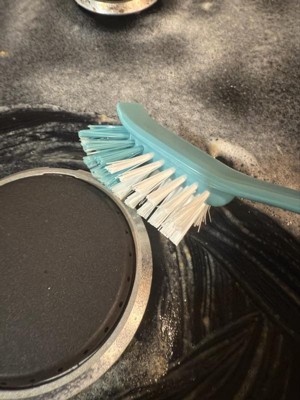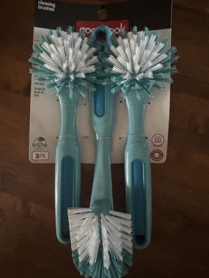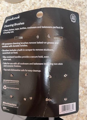 Our GoodCook Everyday All-Purpose Cleaning brushes are great for everyday cleaning of dishes, cups, water bottles, bakeware and cookware. The durable nylon bristles scrub away baked-on grease and residue and the integrated scrapers remove scorched-on food. The soft, non-slip handles provide a secure hold, even when we. Safe for use with all cookware and bakeware including non-stick and ceramic finishes.
