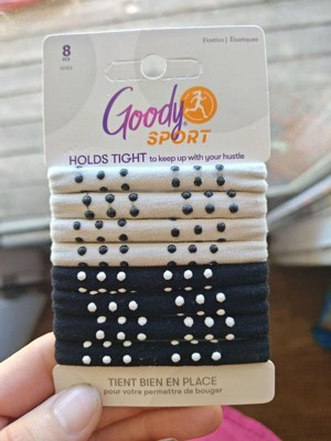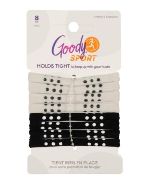 [This review was collected as part of a promotion.] These Goody Sport elastic are the perfect elastic hair ties!! I love that they are super stretchy and breathable, but don't pull on the hair like a regular elastic. The small dots hold the elastic tight around the hair. They are very comfortable to wear. They are durable and do not break easily and they are the perfect size for a ponytail.