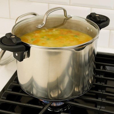 - Comfortable Stay-Cool Handles: Features ergonomic handles that stay cool to the touch, allowing safe and comfortable handling when draining or serving. Twist-and-lock mechanism keeps the lid secure while pouring.
