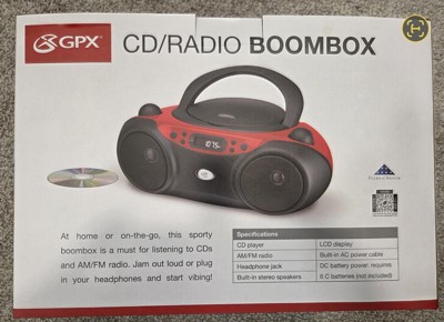 GPX CD, AM/FM Boombox - Red (BC232R): Portable 3.5mm Jack, Built-In Speaker.
