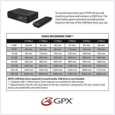 GPX® Digital TV Tuner and Recorder, TVTR149B in Black