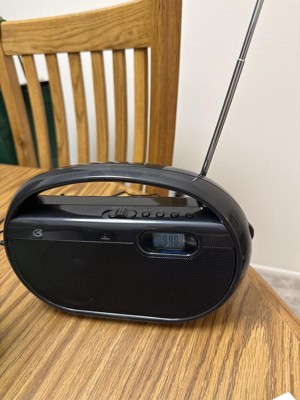 GPX Portable AM/FM Radio: Built-In Digital Clock & Speaker, 3.5mm Jack, Black