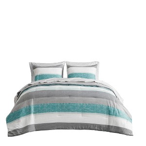 Gracie Mills Ware Striped Comforter Set with Bed Sheets - Twin - Aqua/Grey