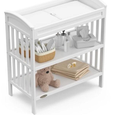 [This review was collected as part of a promotion.] Graco Benton Changing Table with Bonus Water-Resistant Changing Pad is a practical and stylish addition to any nursery. The sturdy wood construction ensures long-lasting durability, while the clean, neutral finish complements various room decors. The spacious shelves provide ample storage for baby essentials, helping to keep everything organized. The included water-resistant changing pad adds convenience and easy cleanup. Its compact design makes it ideal for smaller spaces without compromising functionality. Overall, it's a reliable and functional changing table for new parents.