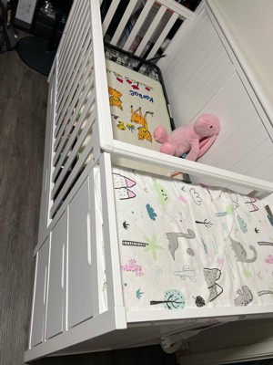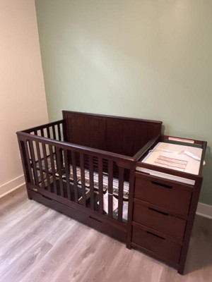 - 5-in-1 CONVERTIBLE CRIB WITH DRAWER AND CHANGER: Converts from baby crib (mattress sold separately) to toddler bed (compatible with 1 or 2 toddler guardrails, each sold separately), daybed, and full-size bed with headboard & optional footboard (compatible full-size conversion kit sold separately)