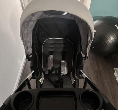 Great stroller. Easy to use. Multiple uses with car seat and stroller then it transitions to a stroller without the car seat. We love the three wheels. Easy to use one handed.