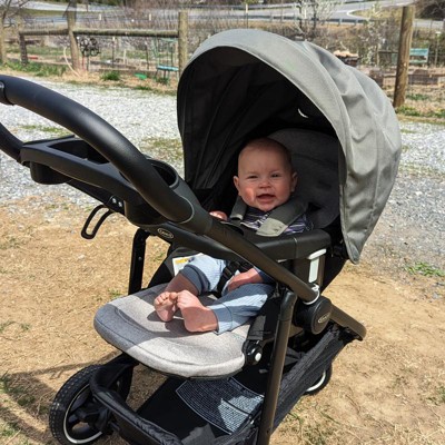 [This review was collected as part of a promotion.] We purchased this Graco modes 3 lite Platinum travel system for our 7-month-old baby. He's been using a bucket seat but we needed something that worked with a stroller. What we really like about this system is that it is perfect for this first year with this style car seat and how the car seat sits in the stroller to work as a Duo system until he outgrows the car seat! And my favorite part of the system is that the stroller seat itself can face forward for a toddler but can also face backward so that I can see my baby as I'm pushing it! So we are really going to be able to use this system solely to get us all the way from these early months to toddlerhood! He especially loves being a big boy and facing me as we walk! I received an incentive to write this review.