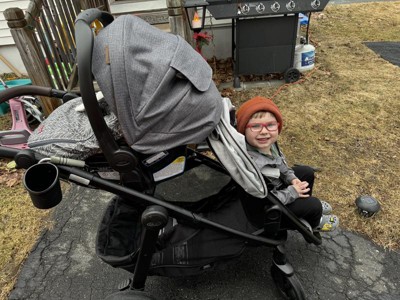 [This review was collected as part of a promotion.] This stroller is only good for when you have 1 child. With a toddler on the front and a baby on the back the stroller doesn’t navigate well. My toddler has to sit at basically a 90° angle so it’s super uncomfortable and not safe for him. The sunshade also hits his head because he’s a tall 18 month old. It’s hard to turn, way too heavy, and taking it apart is a pain. I was hoping this would be a good family growing stroller but I’ll stick with the DuoGlider. The way this stroller is configured is just frustrating.