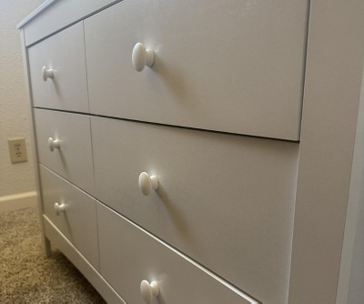 This dresser was a huge disappointment, a bunch of the pieces came dented and scraped. For $300 I am extremely dude in the quality of the product. One of the drawers also doesn’t go in all the way, as well as ALL of the drawers don’t come out all the way making it hard to get clothes inside and out.