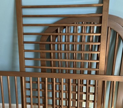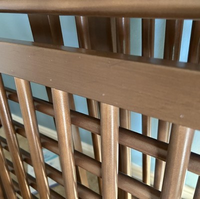 This crib is pretty, but the quality is below what I was expecting. One rail piece had sloppy stain application (pictured) and the other rail piece you could see rough spots where the spindles were inserted against the rail (not sure if it’s from a nail or what, also pictured), at each and every spindle. This is at the inside top where baby would place hands and potentially mouth. The color is also darker than listing shows, especially in lighting that isn’t natural sunlight, although still a nice color. It doesn’t feel as sturdy as our previous crib. Sadly this crib color is now out of stock so we don’t have the chance to try buying another and see if we just got a lemon. We have a different crib from our first two babies that has held up well (and is still being used by our 2 year old) which was similarly priced and much better quality and sturdiness. We might just buy a different color of that one.