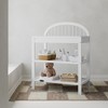 [This review was collected as part of a promotion.] I love my Graco Olivia Changing Table! It is a well-made and sturdy piece of furniture. One of the things I love most about this changing table is the ample storage (the space in between shelves is 8 1/4). The spacious shelves provide more than enough room to store diapers, wipes, and other baby essentials. My wicker boxes fit perfectly, so I'm able to store away toys I have no room for on the bottom shelf. The fact that this changing table is open, unlinke your traditional ones, helps me keep it more organized. The height of the changing surface is just right, reducing the strain on my back during diaper changes. The safety rails around the top give me peace of mind, knowing that my baby is secure. Overall, the Graco Olivia Changing Table has exceeded my expectations. I would highly recommend it to any parent looking for a reliable and simple changing table. I wish that they did make it in brown, but you are able to choose from white, black, or driftwood.