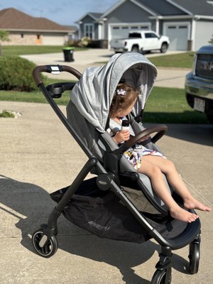 [This review was collected as part of a promotion.] I tested the Graco Premier Modes Stroller as part of the Stellar Product Testing Panel, and here’s a quick overview: Features: This stroller offers a spacious storage basket, a sleek design, and 360-degree wheels for easy maneuvering. It’s adaptable, allowing use with an infant car seat or the included toddler seat, and supports both forward and rear-facing positions. The canopy has a vent option, and the harness is easily adjustable with a magnetic closure. Pros: Large Storage Basket: Perfect for carrying essentials. Modern Design: Stylish and contemporary. Taller Handlebar: Comfortable for taller parents. 360-Degree Wheels: Great for tight spaces. Flexible Seating: Can connect to a car seat or use the toddler seat. Adjustable Canopy: Includes a vent for airflow. Magnetic Harness: Easy to adjust. Cons: Dual Brakes: Requires pressing two brakes to lock. Bulky When Folded: Takes up a lot of space in trunks. Bump Navigation: Difficult to get over bumps. Non-Machine Washable Fabric: Not the easiest to clean. Small Parent Tray: Doesn’t hold larger bottles well. Limited Recline: Seat doesn’t lay completely flat. Overall Impression: The stroller is a versatile and stylish choice for families. Despite some minor drawbacks, its adaptability and features make it a strong contender for those in need of a functional and good-looking stroller.