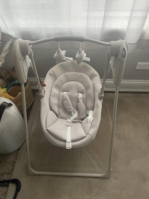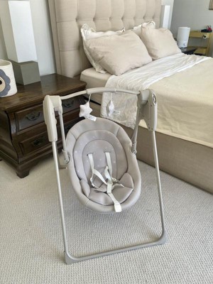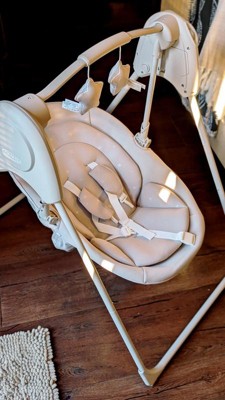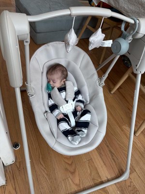 [This review was collected as part of a promotion.] First, I love the look of this baby swing, it is neutral and soft and doesn’t make our bedroom look cluttered. My three month old has been comfortable in the swing and will stay in it for a good amount of time while I get a bit done nearby. My favorite feature with this is the harness and how sturdy the frame is. Since it is a five point harness I don’t have to worry too much about my baby falling out. This is important mostly because I have older toddlers in the house and they like to push the baby in the swing and it is definitely a much safer setup than chairs/swings we have owned in the past. I love that it folds up too because we live in a small apartment and it is nice to tuck it away from time to time even if it is just to quickly vacuum the floor. Overall I think this is a great swing and does what it needs to do safely. I was given this swing to try as part of the Stellar Product Testing Panel.