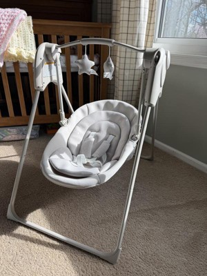 [This review was collected as part of a promotion.] We’ve been using the Graco Slim Spaces Swing for a few weeks now, and it has honestly been such a great addition to our home — especially with limited space. One of my favorite features is how compact it is. It truly lives up to the “Slim Spaces” name. It fits easily in our living room without taking over the entire space, and I love that it folds up quickly when we want to tuck it away. The carry handle makes it simple to move from room to room, which has been really convenient during the day. The adjustable swinging speeds have been great for figuring out what works best for my baby. Some days she prefers a slower, gentler sway, and other times the slightly faster setting does the trick. The seat is cozy and supportive, and the head support makes it feel secure for younger babies. The overhead toy bar is simple but engaging enough to keep her entertained while she swings. Another big plus is how quiet it is. The motor has a soft hum, but it’s not disruptive, which is especially important during naps. Setup was also straightforward and didn’t take long at all. We received this swing through the Stellar Product Testing Panel, and we’re so grateful we got to try it. It’s been a practical, space-saving solution that actually gets used daily in our house. If you’re looking for a swing that doesn’t dominate your living space but still offers comfort and soothing features, this one is definitely worth considering.