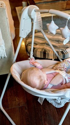 [This review was collected as part of a promotion.] I received this swing to try as part of the Stellar Product Testing Panel. Overall I am so happy with it! As a mom of three who lives in a small home, the size, portability and ability to quickly fold this swing have made it my favorite swing I have ever used. Floor space is hard to come by in our home, so I had planned to skip a swing for this baby until I received this one. I am so happy I did! My baby is very comfortable in his swing and it has been great to have a portable space to put him down off of the floor. The assembly was very simple and it is easy to operate. I have really enjoyed being able to quickly and easily move this swing room to room as I follow my other kids around, or even fit it easily in the back of the car to go to grandparents’ or friends’ houses. Compared to other swings, I would say this one has less bells and whistles (no sound, can’t change direction of the swinging etc) but I don’t think those things are always necessary and for me the portability outweighs those benefits. I will note that my baby is on the smaller side, and he fits perfectly in the seat but a friend with a larger baby used it at our house and he did not fit in the straps as well. I would definitely recommend this swing to others who are looking for something that they can bring anywhere and is super functional. It would also be amazing to keep at a grandparent’s or babysitter’s house since it stores so easily. I am so glad I received it!