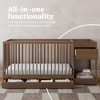 - 5-IN-1 CONVERTIBLE CRIB & CHANGING TABLE: Converts from crib with attached changing table (includes water-resistant changing pad; mattress sold separately) to toddler bed (compatible toddler guardrails sold separately), daybed, and full-size bed with headboard and optional footboard (compatible full-size bed conversion kit sold separately).