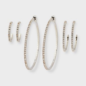 - 3-pair graduated pave hoop earring set