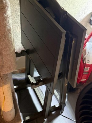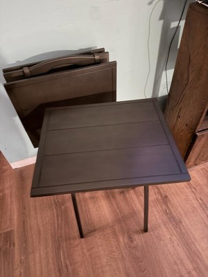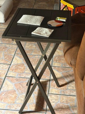 [This review was collected as part of a promotion.] I really like this set of foldable tables. The style is rustic and the table is sturdy. It’s a bit too tall for my couch but I feel like my couch is low. My husband had trouble assembling the stand and one of the screws went through the wood which was disappointing