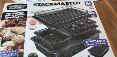 [This review was collected as part of a promotion.] I got the Granitestone 6 Piece Stackable Bakeware Set for myself. These are amazing pans! First I love how they all stack together! Such a great space saver. The Granitestone material is awesome for baking and cleaning. The food comes right out! Very easy to clean up too. I will never go back to any other bakeware! I would definitely recommend this product to my family and friends.