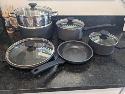 [This review was collected as part of a promotion.] I have been using the granite stone 10 piece cookware set for a little over a week now. I absolutely love it. I have a big family and we cook a lot!! I am impressed with the high quality of the cookware. Everything I have cooked comes out amazing doesn't stick to the pan which is awesome. The steamer is my favorite. The handles are very comfortable to grip which I like.