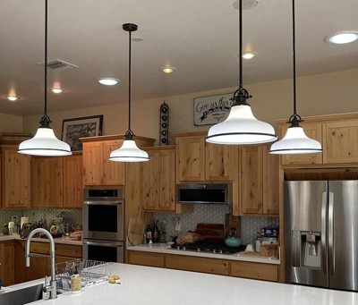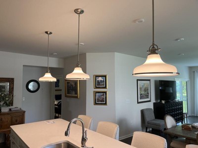 Look beautiful over our kitchen island. Fantastic product look better than the online picture. Truly a great value. Would recommend to anyone.