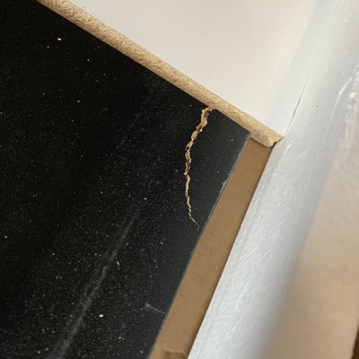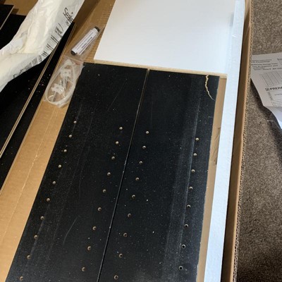 Arrived damaged with broken corner on one support board. Had to open the box to see broken shelf, then couldn’t return as new and unopened, and couldn’t get it back to store anyway as it was delivered here and item is extremely heavy when in box. Put the shelf together, and it would be very nice if not damaged. Had to wood glue and clamp the corner back together. After painting damaged and repaired area black, and putting something in front so it doesn’t show, it will at least be a functional DVD/Blu-Ray storage shelf