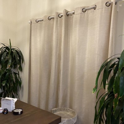 [This review was collected as part of a promotion.] I recently got these Grasscloth curtains by Ricardo and I am highly impressed. The material is top-notch, and the addition of a liner behind the front fabric adds durability. The heavy draping gives them a nice appearance. These curtains effectively block out light, making the room dimmee in the morning and allowing my daughter to sleep longer. The front fabric has a subtle shine, adding a lovely touch. The white color I got complements any room decor, providing versatility for future decoration changes. Overall, I would recommend the Grasscloth curtains for their quality, light-blocking ability, and attractive design.
