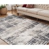 Set an inviting tone in your space with this 5-foot x 8-foot gray and ivory abstract area rug. Ideal for spaces with kids and pets, this rug is stain resistant to help repel dirt and spilled liquids. Built to last, this rug crafted from polypropylene fibers is known for its durability and long lasting appeal. Rugs are a great way to showcase your style, hide imperfections, warm your home and reduce noise. This larger sized, modern styled rug is ready to create a focal point or statement piece in your room. 63.00-inch h x 90.00-inch w x 0.30-inch d.