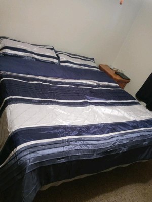 [This review was collected as part of a promotion.] This 7 Piece Comforter Set is beautiful! It comes with 3 decorative pillows, 2 shams, bed skirt and a really nice comforter. It’s machine washable, with a striped design. I love the textures on it and it fits perfectly on my bed. I would recommend this.