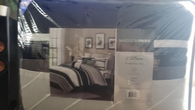 [This review was collected as part of a promotion.] I absolutely love my new Madison Park Blaire 7 Piece Comforter Set! It has such an elegant look and my husband and I just love it. It comes with 3 decorative pillows, a comforter, 2 shams, and a bed skirt. The black, white, and gray look great together. The comforter has a soft, silky feel to it, as do the shams and pillows. It is super comfortable. It looks very pretty on my bed and I love this design. I definitely recommend this bed set.