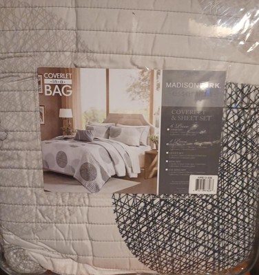 [This review was collected as part of a promotion.] I like to change up my bedding quite frequently and the Knowles Madison Park Essentials Coverlet & Sheet Set gives my bedroom a more modern vibe. The set has geometric circular shapes that complement each other quite well and are varying shades of mainly white, grey, and black. This set comes with the coverlet, 2 shams, 1 flat sheet, 1 fitted sheet, 2 pillowcases, and 1 decorative pillow to complete a full look & feel. Everything is quite stiff right out of the packaging but does soften up after laundering. The sheets fit quite well on my queen-sized mattress and the coverlet leaves plenty of space on both sides of the bed. I appreciate that this set does come with a decorative pillow that matches everything perfectly.